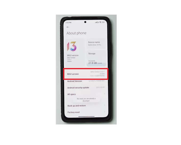 2. Tap 7-10 times on the OS version in quick succession to activate Developer Options.
